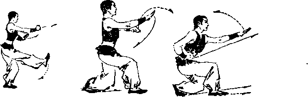 1 左脚稍后移》同时左拳外旋, 左向下旋转至身前,