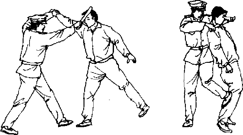 可用前点.顶刺、拉颈等方法。使敌受击后,呼吸困难或昏 厥休克?重者喉结粉碎可致死亡(图658),