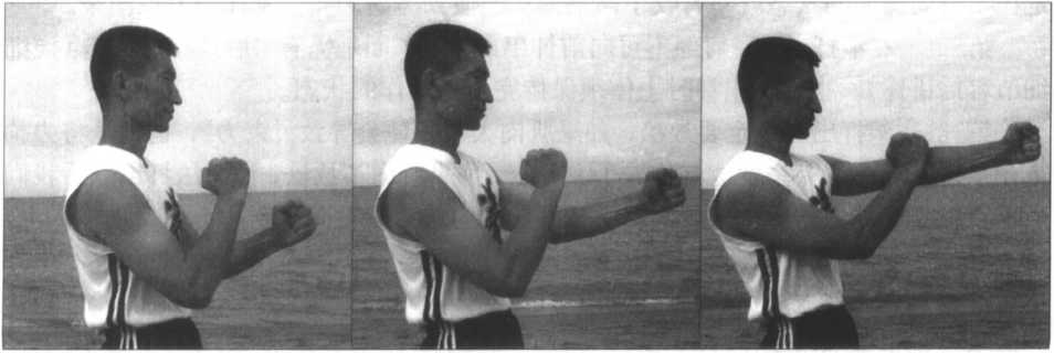 图 1-52图 1-52图 1-53图 1-53图 1-54图 1-54图 1-55图 1-55图 1-56图 1-56(图1—56、57、58、59)为“左曰字冲拳”的侧面 示范。动作要求:“左曰字冲拳”的动作要求同上面右拳练习之要求。训练量:每堂课练习2分钟。(图1—56、57、58、59)为“左曰字冲拳”的侧面 示范。动作要求:“左曰字冲拳”的动作要求同上面右拳练习之要求。训练量:每堂课练习2分钟。图 1—57 图 1—58 图 1—59图 1—57 图 1—58 图 1—59直至手臂完全打直为止,此时即成为左“曰字冲 拳”(图 1—55)。