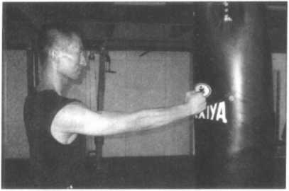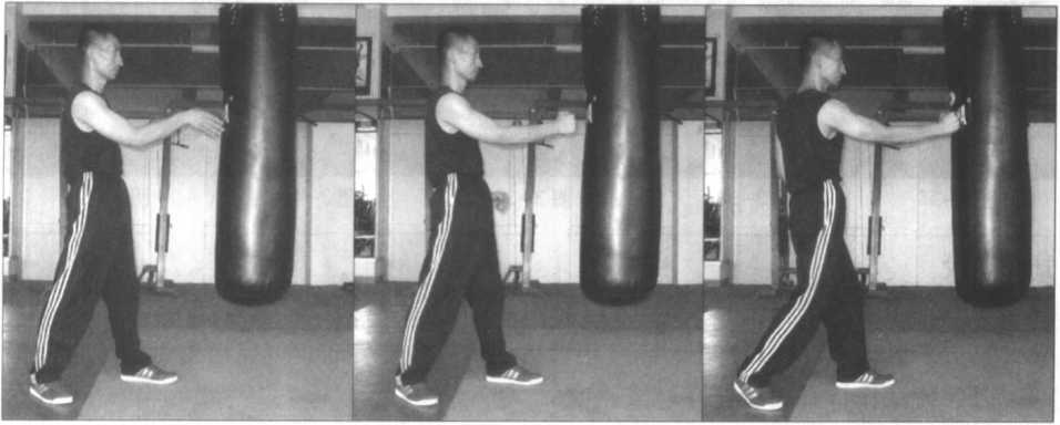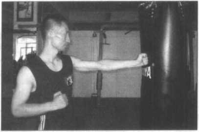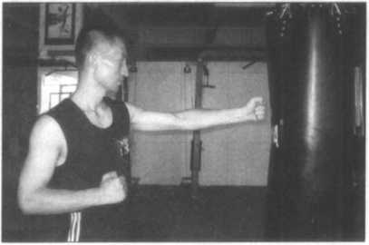 主要是磨练右拳或左拳的单拳之高度杀伤力,从而首先学会正确的动作定型,然 后再去练习双拳连环狠击的“连续击打技术”。