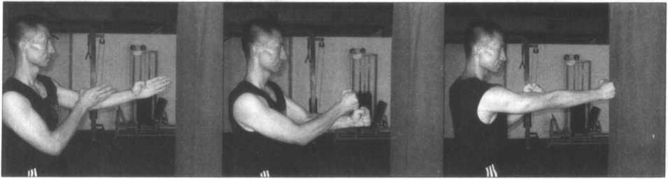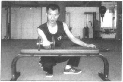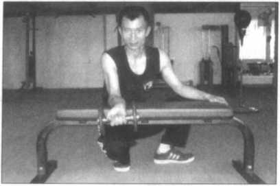 众所周知,寸劲拳的有效发挥在很大程度上靠的是强劲的腕力,事实上如果腕力 不够强韧的话,不用说去重创对手,可能还会在击中对手时挫伤自己的手腕,所以在 寸劲拳的整体训练计划中十分重视腕力的练习。前面的一些击打墙壁靶的练习及持重 冲拳的练习虽可在一定程度上锻炼到腕部力度与韧性,但这种锻炼是间接的,它与寸 劲拳所要求的强猛的打击力度仍有一定的差距,因此就需要借助这种手持哑铃或轻杠 铃的专门性力量训练手段来进行强化训练了。