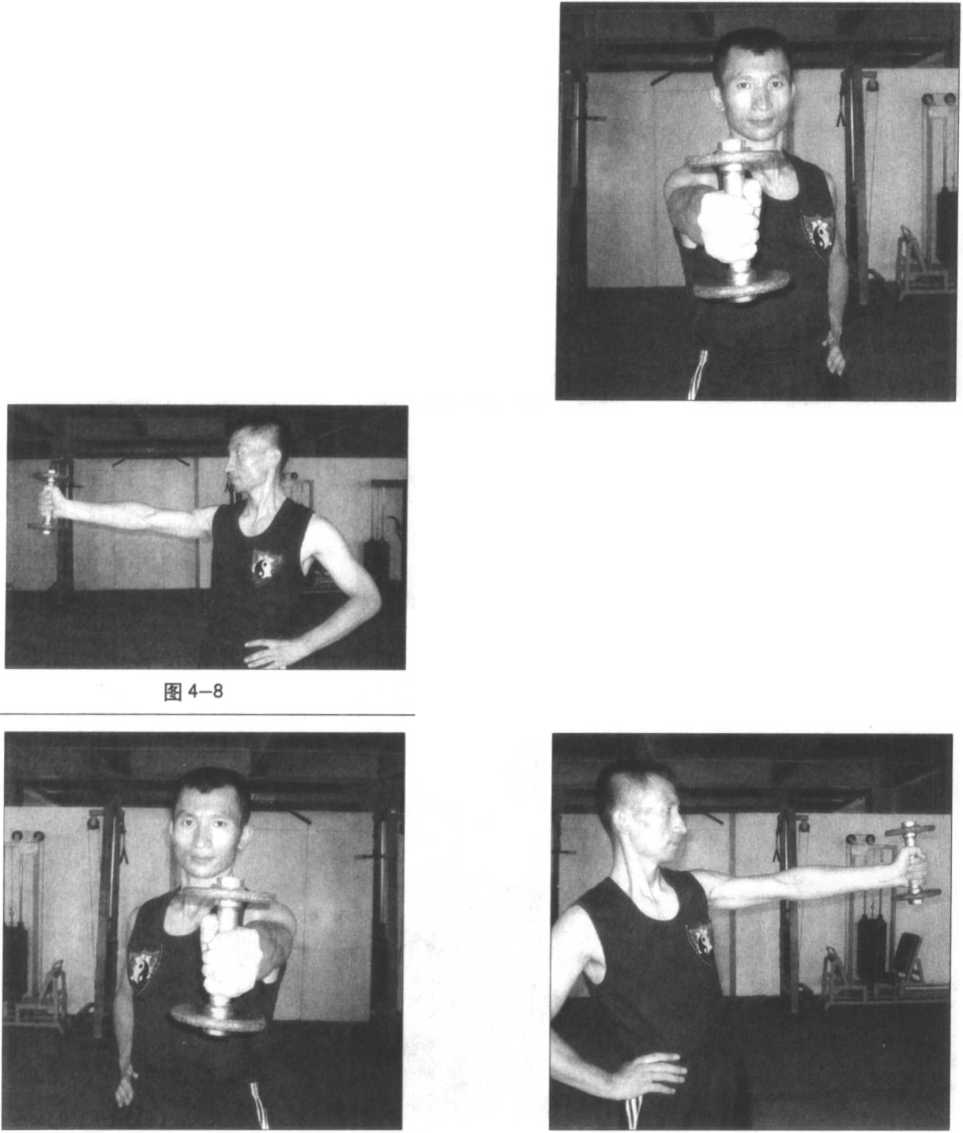 (图4-8)为持重静止举拳练习的侧面 示范。