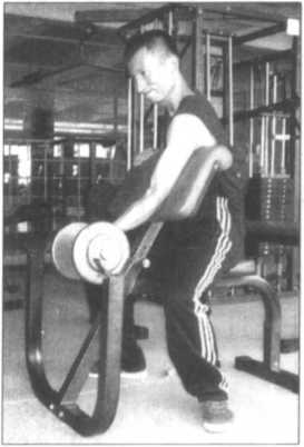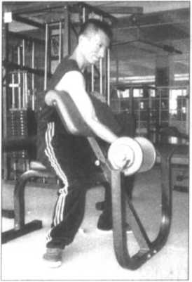 (图7-24、25、26)为左臂弯举练习的动作示范。记住,上体须坐稳不可助力, 以免影响到上肢的训练效果。