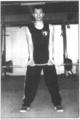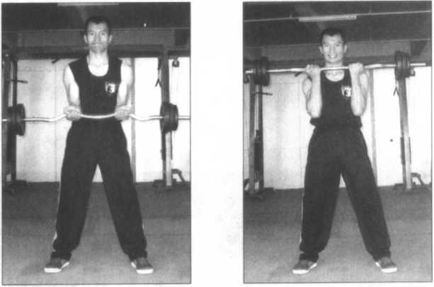 (图7-30、31、32)为由站立的状态进行直立杠铃弯举练习的正面示范。