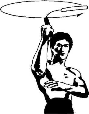 此时需注意的是,右手在到达一定位置后即停止不动,而白棍仍将沿原路线继续 运行,但是速度及力量将减弱,当白棍接触身体的回弹部位时,其力量已不足以伤害 自己。