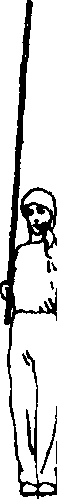 身体直立,挺胸收腹;右手握棍要紧, 使棍身垂直。