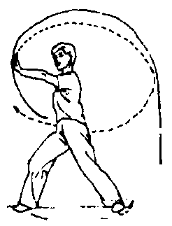 (2)第49动“弧行步击响里合腿”接着做第50动“上步拍 地”时应注意: