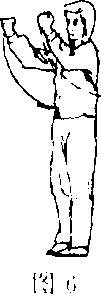 两掌慢慢握拳,含胸拔背,两臂持 续紧张用力,以示刚劲有力的特点;两 臂运行反挂拳时臂部肌肉要放松,抱拳 与转头目视左前方要一致。