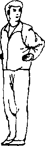面向场地右前方,两脚并步站立;两掌直臂贴靠于两腿外