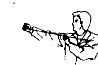 ③左腿屈膝,右腿内转挺膝伸直成左弓步;同时,右拳向前 平冲,拳眼朝上,左掌护于右上臂内侧,掌心朝右,掌指朝上; 目视前方;同时,发“嗨”声(图14)。