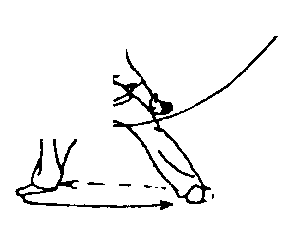 上体右转,腰向右后侧抽带,重心移至右腿;右手持刀臂内 旋,向下、向右回带,刀刃向右,刀尖朝下,左手由刀背上方向 左下方插掌;目视左手(图60)。