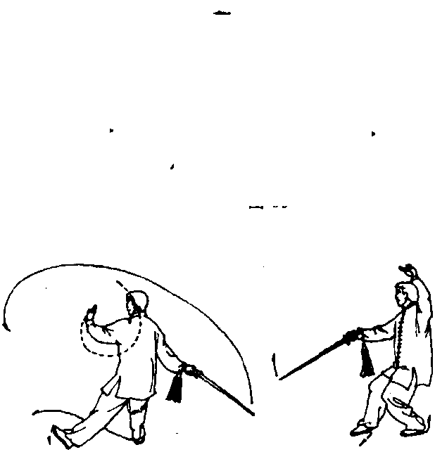 ②随身体重心前移,右脚摆步向前,上体略右转;同时,右 手握剑经上向前划弧,前臂外旋,手心朝上,剑尖朝前,低于右 ?270?