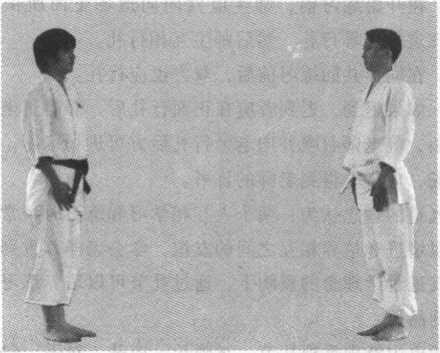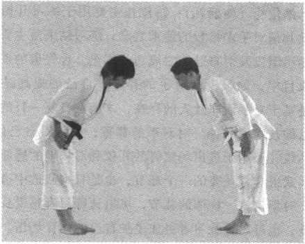 站位礼主要用于练习开始时对对手的尊重和请对手多指教的请求之意练习结束后主要是表示对对手的感谢以及对自己练习成功的尊重。合气道的理念认为在对练项目中如果没有对手的存在自己的提高是不可能的。正是基于对手而非敌人的存在才能在日复一日的练习中磨炼自己的技术和品德。对对手的尊重就是对自己的尊重。另外站位礼还用于进出场馆时的礼仪和对场地的感谢这是习练日本武道非常重要的一个环节也是日本武道中道德教育的一环。对场馆这一物体的礼节可以让练习者感受到学习现场的神圣也可以让练习者更加爱护自己的体育场馆。与其说向场馆致礼不如说是在向自己的心态行为规范致敬。在日本一堂练习课结束后参与者会一起清扫甚至抹擦地面因此即使外观看上去是比较陈旧的建筑场馆内部一般都是整洁干净的。站位礼的具体操作方法是直立后上体前倾约40。(图1—4、图1一5)