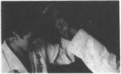 练习二:当右侧上方受击时,则用左前臂 (尺骨部位)屈、肘向内磕击封阻防守(见图 511)o