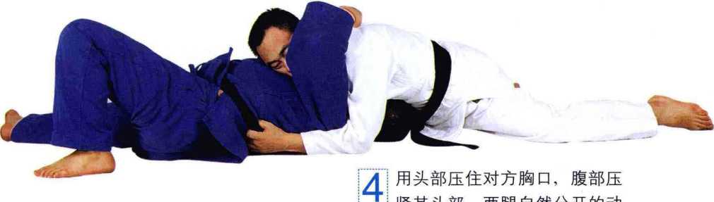 ①使用两臂缩紧的力量和胸部来控制受方的两臂和上体的自由,然后实 施固技。