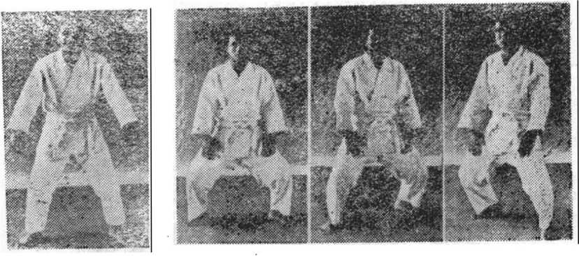 (1)用自然体站立开始,一脚向侧面迈一大步成半蹲见(图 47)o