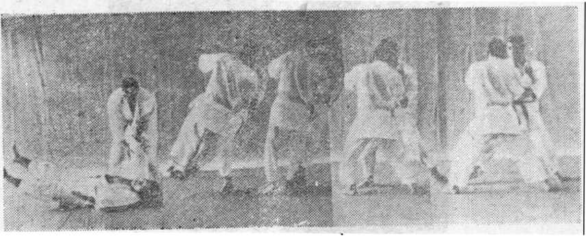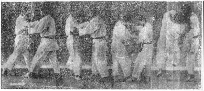 (2 ) 一方顺势用右手推,促使对方左脚向斜后方遇一大 裁