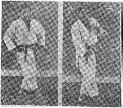 (3 ) 一方用左手把对方向左后上方推,顺势用右手提,促 使对方右脚后退;两脚并在一起。
