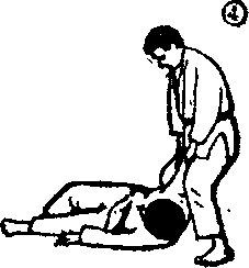 ⑶左脚I用力向斛上方猛烈扫圈)同时上体向左MJSMd合两臂力量,把对方向 左后方推送e