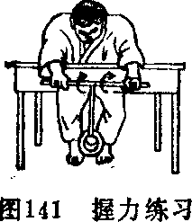 握力和腕力,在捽技和控 制技中都起着重要作用。练习 方法(图141):利用小棍系上 一定的重量,向上屈卷。