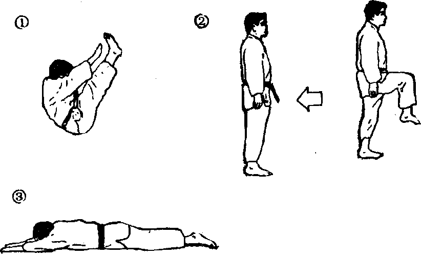 方法一(图142-①):从仰卧姿势开始,上体和腿收"