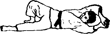 方法一(图144) I匍匐前进,俯卧后利用两手和两肘 的力量,使身体前进。