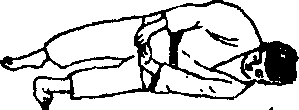 方法二(图145):仰卧在垫子上,做侧转屈体。