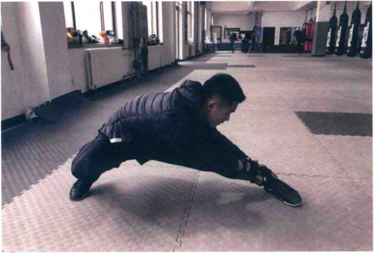 1 动作细节站立为两脚开立两倍肩宽脚尖向前。重心向一侧移动屈膝下蹲一侧腿伸直脚尖勾起指向天花板。身体朝伸直腿方向旋转。保持15-30后起身还原站立位换另一侧腿下蹲。2 动作目的提高髓关节外展的幅度增加大腿内侧肌群的延展性。