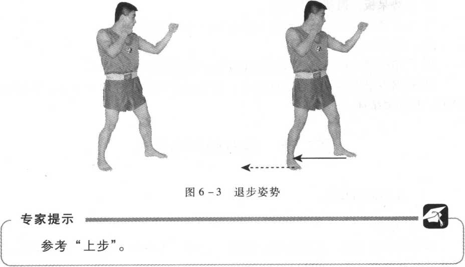 前脚蹬地,后脚先后退半步,前脚再退回半步,平视前方(图6-3)。