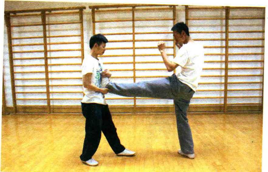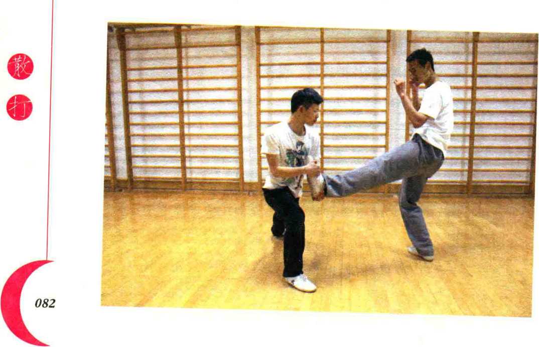 技击作用:多用于主动抱单腿或接抱对方蹬踢腿的防守反击。