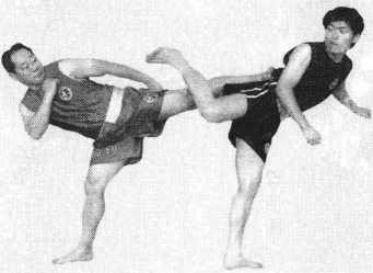 利于打倒对方。右正蹬腿本身蹬击力量大,当对方转身后蹬腿时,我方右正 蹬腿正好迎击对方右臀部或右大腿,迎击增加蹬击力度,能重击对方,易于将其 打倒。蹬击其他部位,不能获得迎击效果,重要的是易于滑脱,不能获得重击效 果,也不能有效破坏对方后蹬腿打击,打击效果较差。