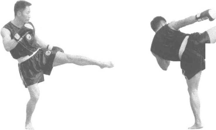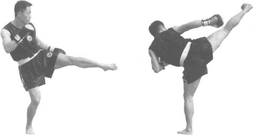 2左鞭腿-右踹腿(图3-112、图3-113)