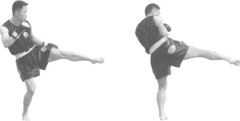 训练时分别做左鞭腿、右蹬腿单一动作练习再进行左鞭腿右蹬腿组合练习。要求动作协调连贯注意充分转髓、蹬伸练习次数3-5组持续时间为20?30分钟。