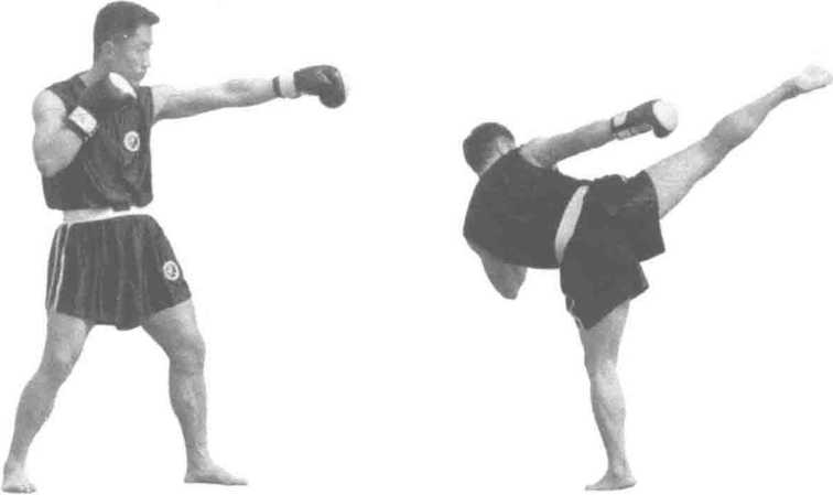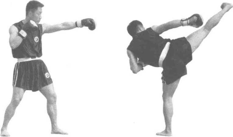 4左冲拳-右后摆腿(图3-124、图3-125)4左冲拳-右后摆腿(图3-124、图3-125)图3-124 图3-125图3-124 图3-125