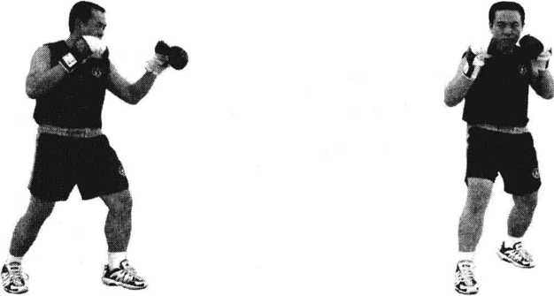 要点与提示:体松意静,气顺神足,竖颈含颌,虚胸实腑,沉胯敛臀,松肩坠肘,闭口 合齿。实战姿势应保持身型舒松自然,双腿富于弹性,以便移动自如;双手回护体前与 转身,其目的是为了减少自身的受击打面积。