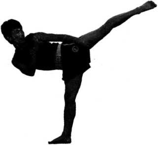 对方左冲拳击来。我方左脚跟外展身体向右侧倾避过来拳并迅速出右腿摆踢寿方头、面部右侧注视