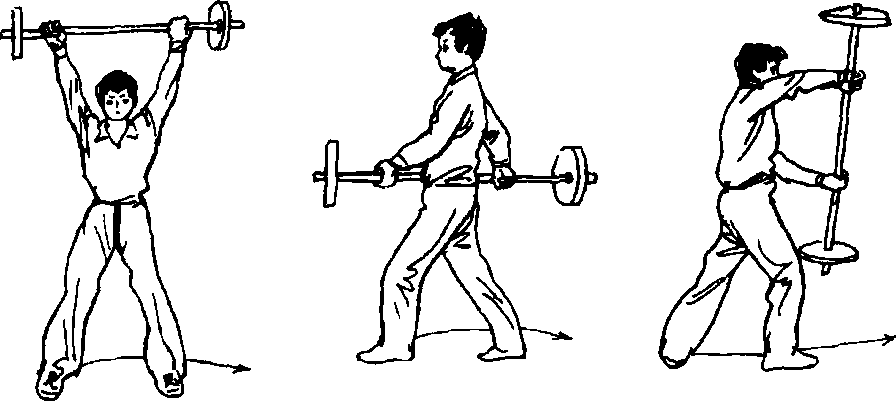 上左脚,正面站立,双手向上挺举石担。(图II/-92)