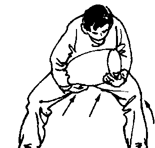 左脚后撤,将石鼓抱至左胸前。(图nj-95)