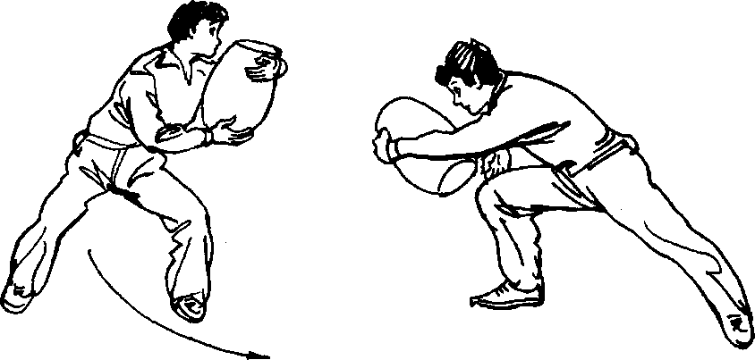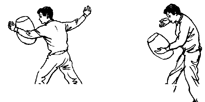 右脚上步,石鼓由左手经胸前滚到右手。(图n-1-96)