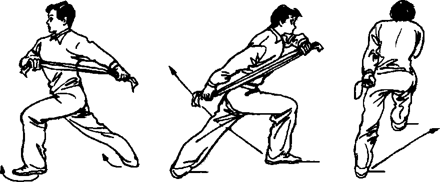 用自己跤衣上的腰带进行抖拉练习,抖拉时全身协调,让脚蹬地的 爆发力达至手指,使腰带发出响亮的绷击声。功法有两种。