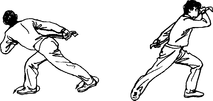 右脚盖步,身体稍微左转,右手在前,左手在后,身体放松准备抖 带。(图U?l-109)