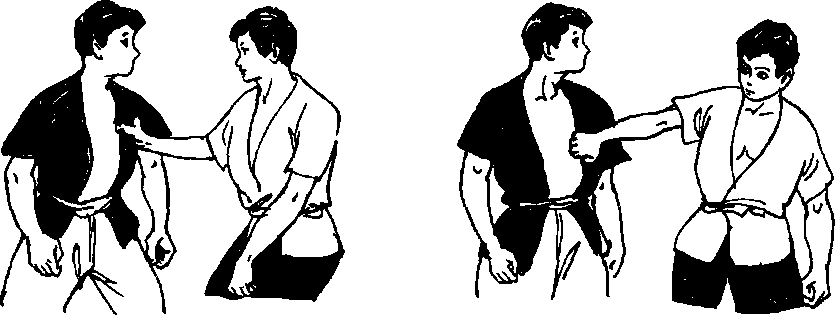 10 .抓袖 以右手为例。右手抓对方左袖,四指在袖里,拇指在 外。(图n?L146)