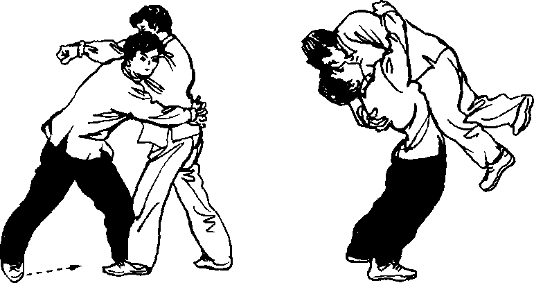 说明:过胸摔技术难度极大,动作的危险性也很大,要注意训练上 的安全。