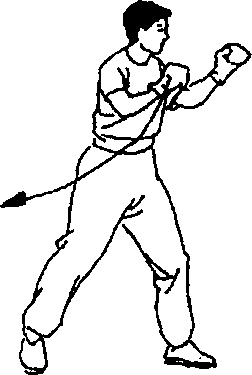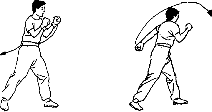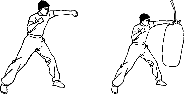〔练法〕抡臂空打,活肩,用腰,体会挥臂如挖物状。 练至肩松臂活后,再打沙袋,分组练习。每组100次,共5 组。