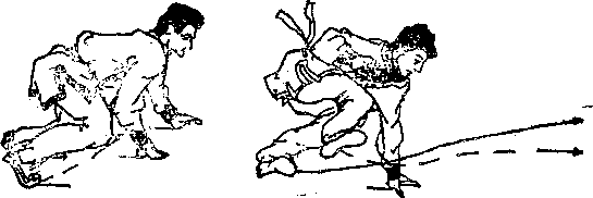 左预备姿势站立。右脚向前并步,两腿弯曲,身体前俯, 两手撑地(见图5-151),随即两脚蹬地,向右摆起,同时右手 推地上摆,左臂支撑(见图5-152),两腿从右向前弧形摆动,当 摆到左臂侧前方时,右手向下撑地■同时两腿挺膝伸直向前蹬 击,两脚分开与肩同宽,腿外展,脚尖勾起,朝斜外方向,力达 脚跟。眼看前方(见图5-153)0要点:两腿侧摆时,两脚离地面不要太高,左臂用力支撑.W持身体平衡,动作要迅速、有力。图 5-151图 5-152实战用途$主要攻击对方胫骨或踝关节部位.图 5-153