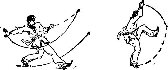 5-175),上动不停,两臂向上摆起,同时左腿用力屈膝向上建