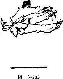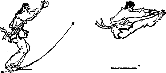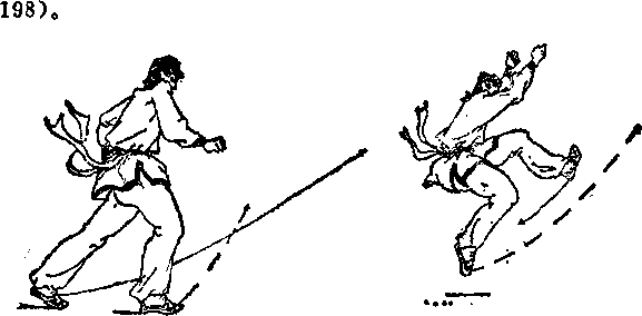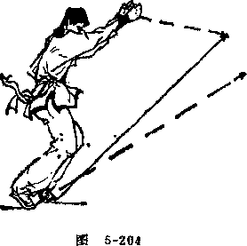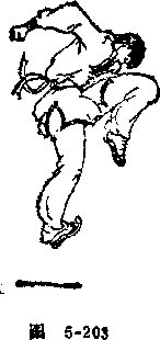 5-199),随即两脚蹬地跳起,身体腾 空,在空中,两腿挺膝伸直同时向前 上方踢击,脚面绷直,两手击拍两脚