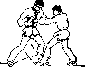 要点' 手、腿呈反方向用力,我右腿要紧紧控制住对方左 腿,推击要突然,使其不及防守,失去重心。
