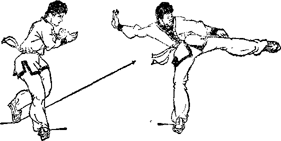 要点'支撑腿伸直或稍曲支撑,脚跟不要离地,弹踢要有 寸劲。