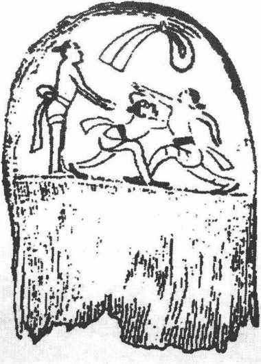技术(散打)走向体育竞技的萌芽。比如1975年在湖北江陵出土的秦墓中发现一个木苞其弧形背面就有彩绘的手搏比赛场面画面显示比赛是在台上进行的其中还有一人双手前伸做裁判状(图1-1)